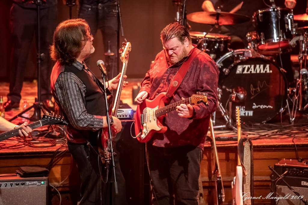 Eine kurze aber herzliche Begrüßung von Danny an die Fans und schon ging es los. Sprichwörtlich zum Opener „Holding All The Cards“ hatten Bryant und Band alles im Griff, wobei sie schon nach drei Stücken die Karten neu mischten und das in der Setlist als Zugabe aufgeführte „Guntown“ schon vorzogen. Die Songauswahl war sehr ähnlich zu der vom Konzert in der Vorwoche, wobei die Perfomance durch die große Besetzung natürlich eine andere war und so nicht das Gefühl aufkam, zweimal dasselbe Konzert gesehen zu haben.
