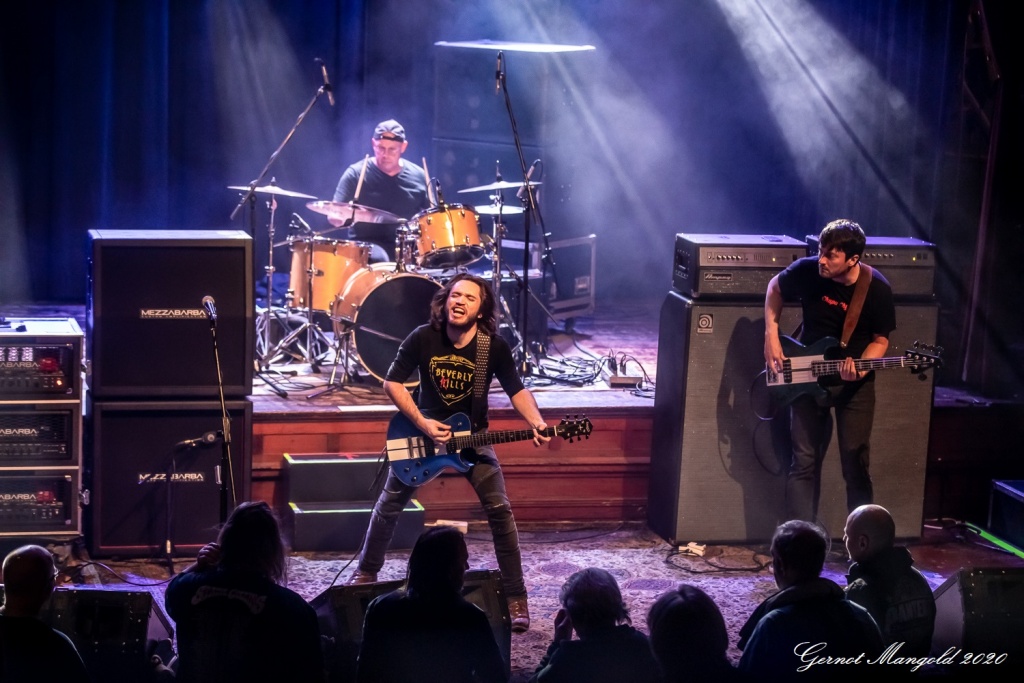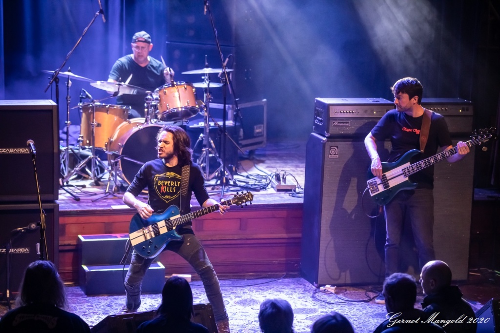 Schon beim Opener kam die spielerische Extraklasse Steckels zur Geltung, wobei ihm Joe Kamps am Bass und Tony Boyd eine solch fette Rhythmusgrundlage hinlegten, dass er sich mit exzessiven Soli darauf austoben konnte. An dem Strickmuster, welches die Anwesenden von Beginn an begeisterte, änderte sich bei „Juke Joint“ nichts. Bluesgrundlage, harte Gitarrenriffs, rasante Soli und eine dazu passende bluesige Stimme.