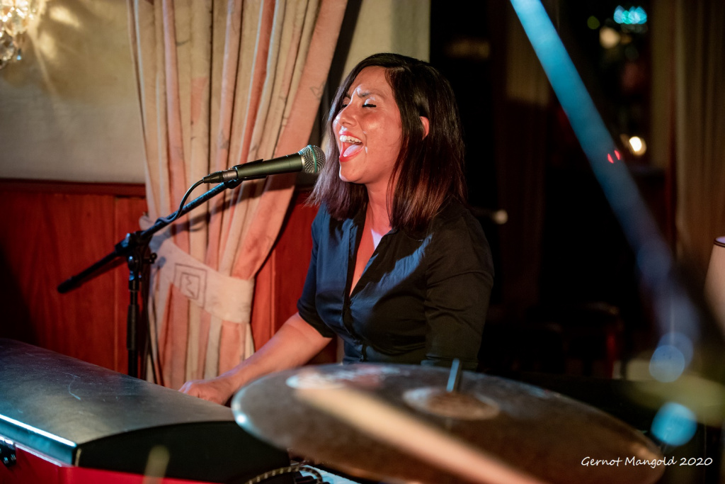 Dabei trafen Soul, Blues und Hardrock aufeinander. Schmidt begeisterte mit einer klaren kraftvollen Stimme, versiertem Pianospiel und gab ‚ihren‘ Songs, ein ganz besonderes souliges Flair. „Dancin‘ In The Street“ und „Family Affair“ hätten die Besucher bestimmt von den Barhockern um die Stehtische gerissen, wenn Engelien nicht nochmals auf die bestehenden Regeln hingewiesen hätte, dass nur ein Tanz im Sitzen erlaubt ist.