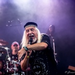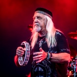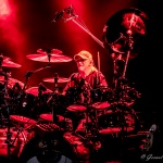 Die Rhythmusfraktion um den zuweilen stoisch den Bass zupfenden Hannes Vesper und das ‚Tier‘ Manni von Bohr an den Drums sorgte für eine Klasse Grundlage der Songs, konnte aber auch mit gekonnter Soloarbeit überzeugen. Rein optisch hatte man auch fast das Gefühl, die Drums würden die ganze Bühne einnehmen.