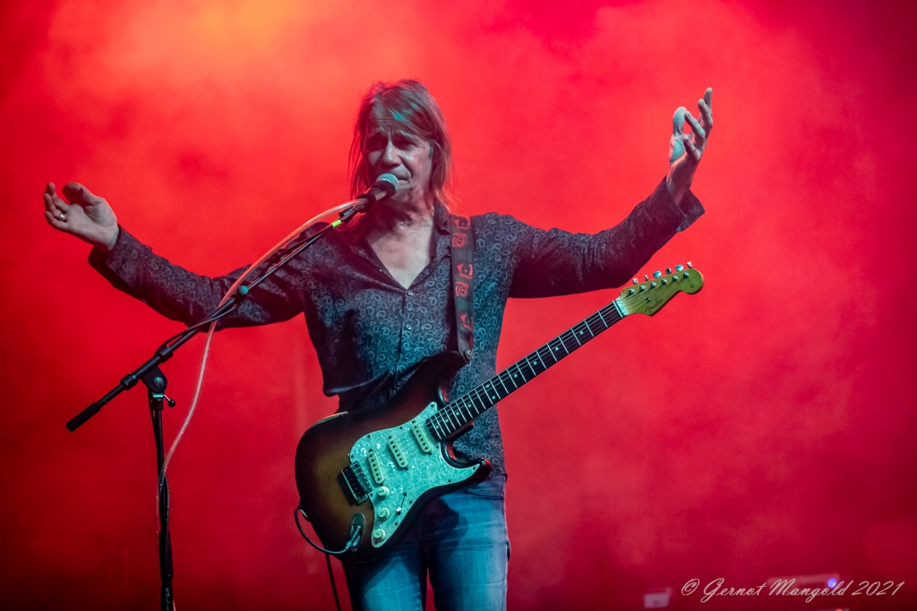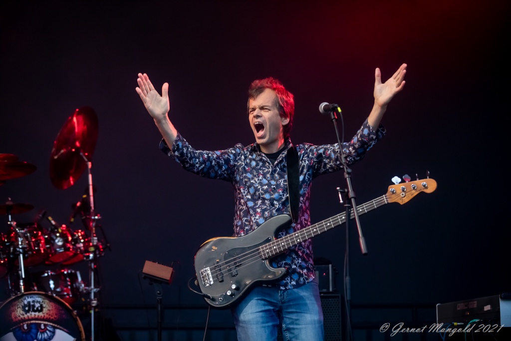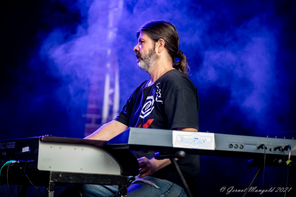 Sascha Kühn an den Keyboards und Organ hielt sich rein optisch eher an der rechten Bühnenseite im Hintergrund, gab aber der Soundstruktur eine ganz besondere Note, mit furiosen Soli oder in dem er regelrechte Klangteppiche auf die Bühne zauberte.