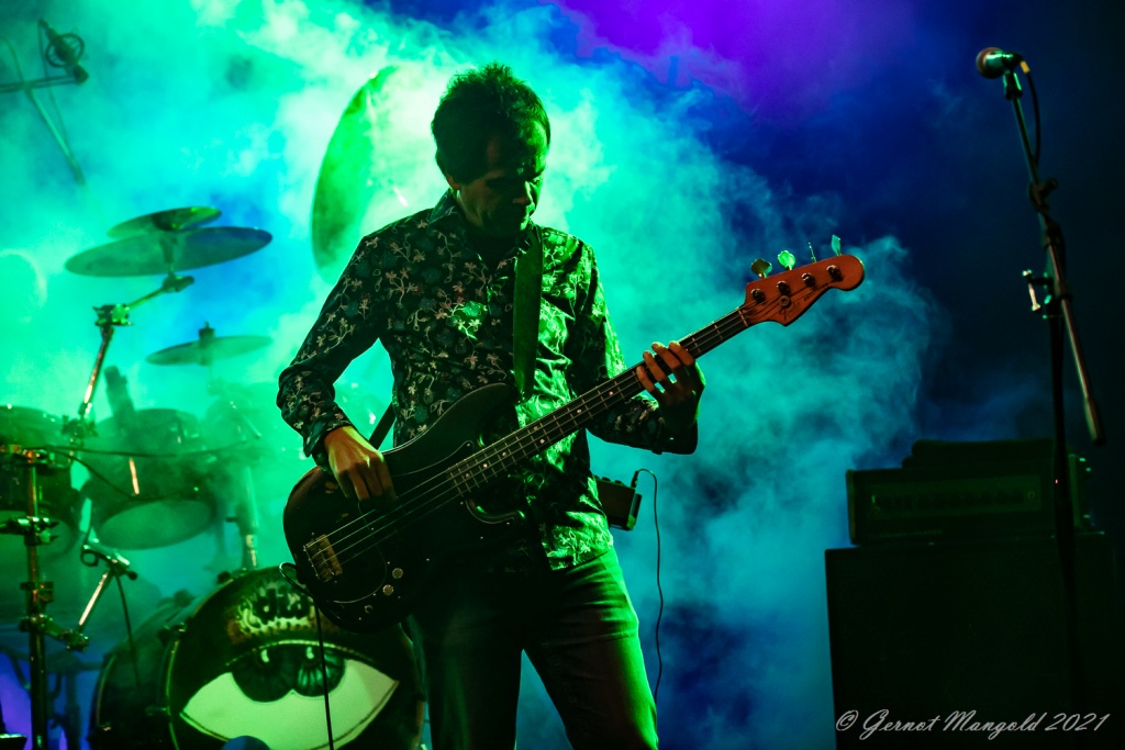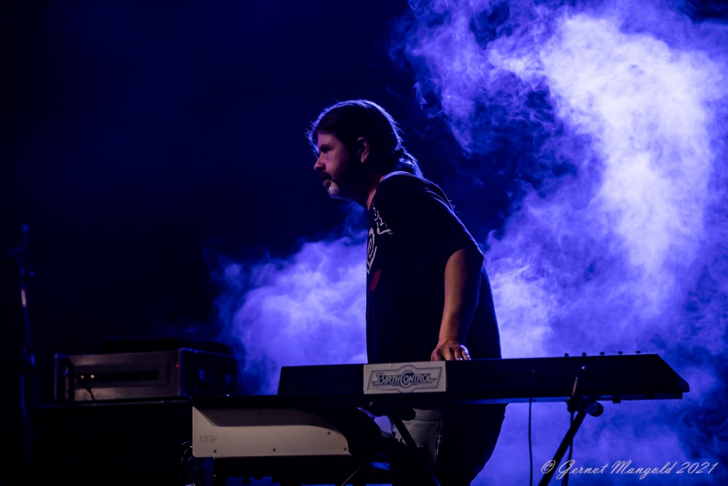 Mit „The Work Is Done“ eröffnete die Band psychedelisch das Konzert, in dem Peter Föller mit einer kleinen Glocke die Klangstäbe seiner Chimes anschlug und so das Startsignal für furiose, knapp zwei Stunden Livemusik gab. Martin ‚Ludi‘ Ettrich begeisterte schon im ersten Track mit langen Soli, was sich in allen Songs wiederholte und erzeugte bei einigen Stücken mit der Talkbox ein besonderes psychedelisches Flair.