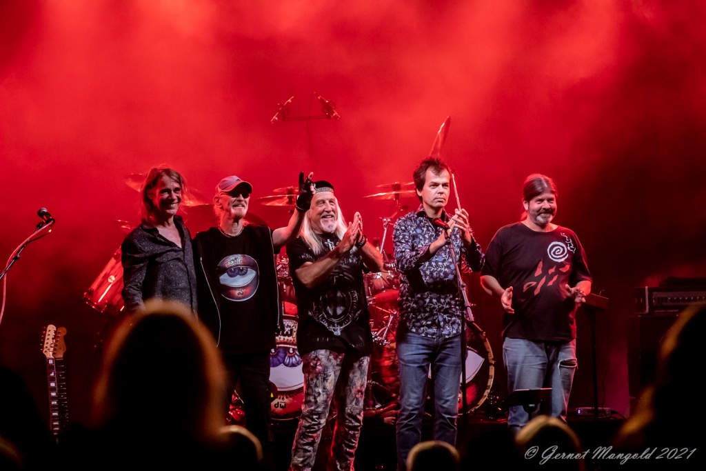 Harte rockende Beats wechselten hier mit eher ruhigen gesanglichen Passagen, welche mich auch stimmlich an manche Sachen aus den letzten Jahren der Karriere von David Bowie erinnerten. Die Premiere vor Publikum war an der Resonanz erkennbar gut gelungen und direkt im Anschluss an den Song zeigte Manni von Bohr in einem mehrminütigen Schlagzeugsolo, warum er zu den besten deutschen Drummern gehört.