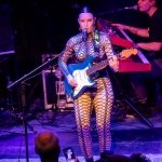 Einen großen Anteil, dass Lyytinen sich zuweilen losgelöst austoben konnte, hatten natürlich die jungen Musiker ihrer bewährten Begleitband. Visuell stand dabei Tatu Back mit Lyytinen in der ersten Reihe und steuerte nicht nur einen wummernden, oft groovenden Bass inklusive eines kurzen Solo bei und unterstütze die auch stimmlich bestens aufgelegte Finnin mit Backgroundgesang. Iiro Laitinen, der andere Part der Rhythmussektion, sorgte mit meist energiegeladenen und stampfenden Drumpassagen für einen Rhythmus, der die anderen zuweilen vor sich hertrieb.