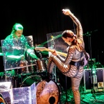 Nach einer etwa 30-minütigen Umbaupause betrat dann Erja Lyytinnen, scheinbar nur mit einem grobmaschigen Netz bekleidet mit ihrer Band die Bühne. Die Sittenwächter oder womöglich eifersüchtige Ehefrauen können an dieser Stelle aber direkt beruhigt werden, auf das, was man durch das scheinbare Netz schaute, war hellbraun beiger Stoff.