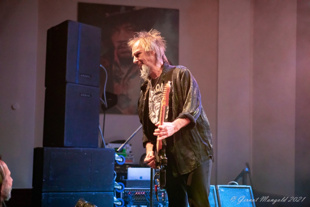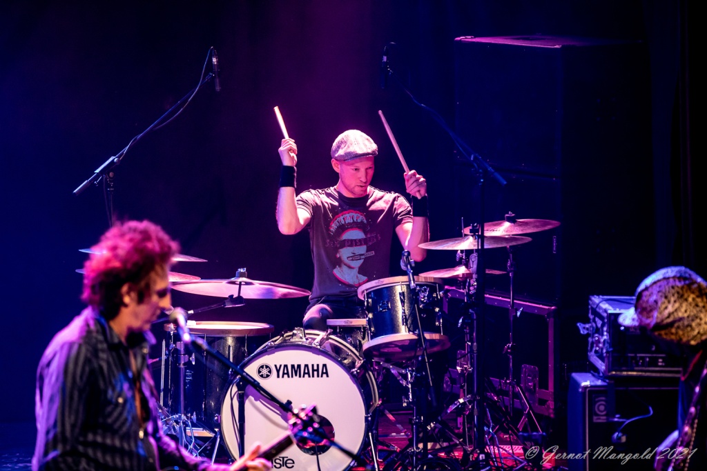 Wyzard am Bass bestätigte fortwährend, dass der Rhythmus bei Ihm im Blut steckt und sorgte neben Drummer Bertram Engel für die volle Grundlage der Songs. Mit seiner Kleidung hätte er auch bei Bob Marley gut in die Band gepasst und bei „Love, Understanding & Respect“ und „Kingston“ zeigte er auch tanzend, seine Reggae-Affinität. Stark, wie die Band hier Reggae und Bluesrock ineinander verschmelzen ließen. Zu denken gab Carlton beim ersten Song, was der Einzug von harten Drogen in Jamaica für negative Spuren hinterlassen hat.