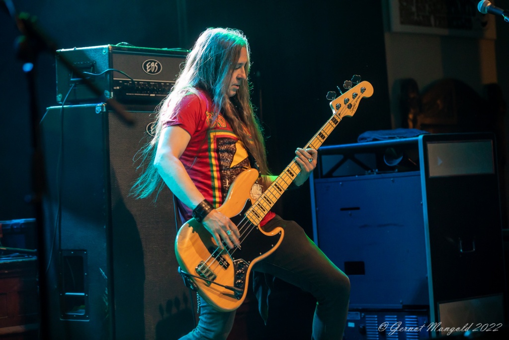 Thomas Juneor Andersson zeigte in diesen beiden Stücken seine Vielseitigkeit an der Gitarre, welche von knallharten Rockriffs, bis hin zur Rhythmusarbeit in Richtung ZZ Top ging. Bei den Soli, in denen er Elemente verschiedenster Musikstile miteinander verschmelzen ließ, spielte er sich zuweilen in einen Rausch, um dann aber wieder punktgenau in den jeweiligen Songs wieder anzukommen. Im Gesang wechselte er sich mit Bassist Per Wiberg ab, der insbesondere bei den stark bluesigen Stücken mit seiner etwas rauheren Stimmlage überzeugen konnte.