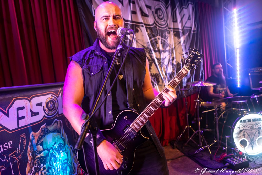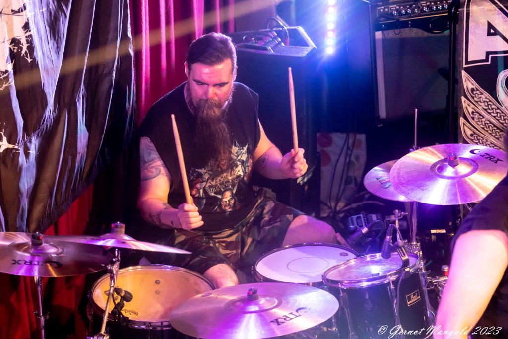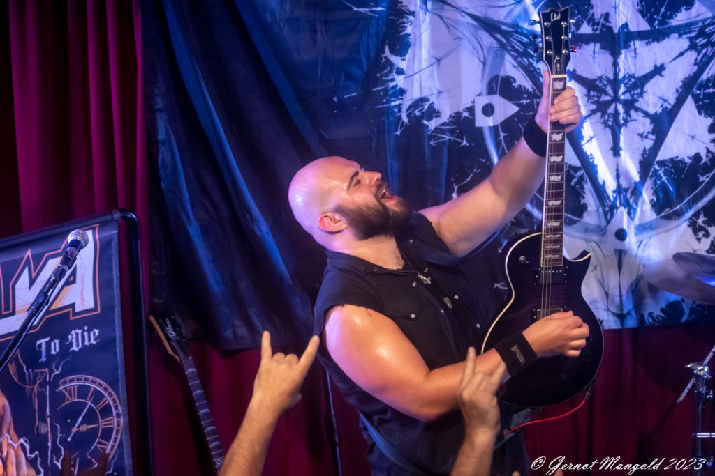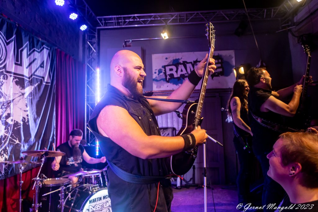 Auch Bassist Karl Schramm legt starke Bassläufe aufs Parkett und zeigt sich fast durchgehend in headbangender Pose, dass es fast verwunderlich ist, dass er das Konzert nicht mit Schleudertrauma beendet. Im weiteren Verlauf des Abends bilden dann Songs des 2022er Albums „Fire In The Sky“ wie der Titelsong, „Stand Your Ground“ oder „Historic Year“ das Skelett der Setlist. Gespickt wird dies mit einigen Stücken von „Deflance“ und „Side By Side“, sodass jedes Album musikalisch erwähnt wird.