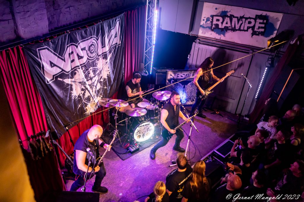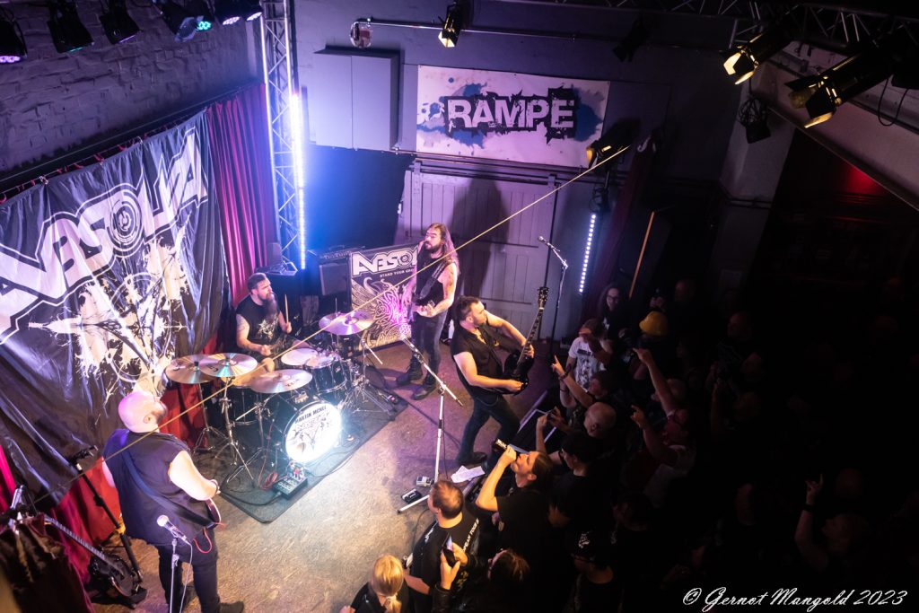 Kurz vor 21:00 Uhr läutet „Hells Bells“ von AC/DC den Auftritt von Absolva in der ausverkauften Krefelder Kulturrampe ein. Wie gewohnt sagt Pille Peerlings die Band an und sorgt dabei für den ersten großen Applaus, als er verkündet, dass ein Nachfolger für die Rampe gefunden ist, der das bewährte Konzept weiterführt.