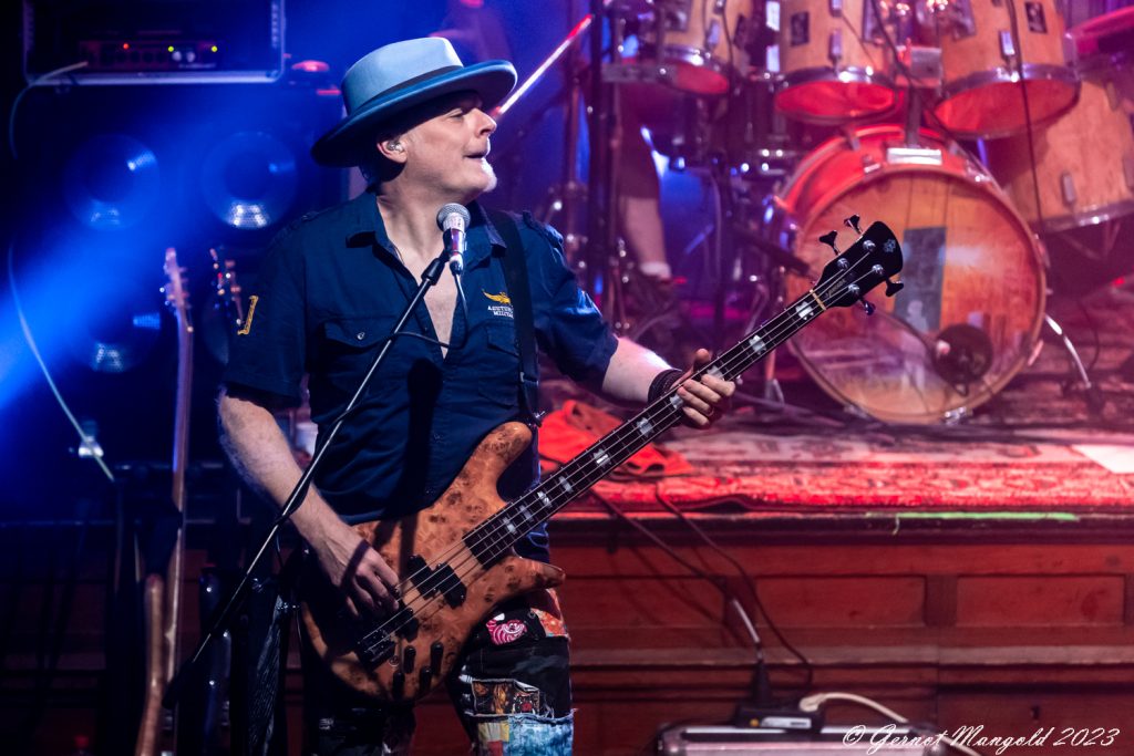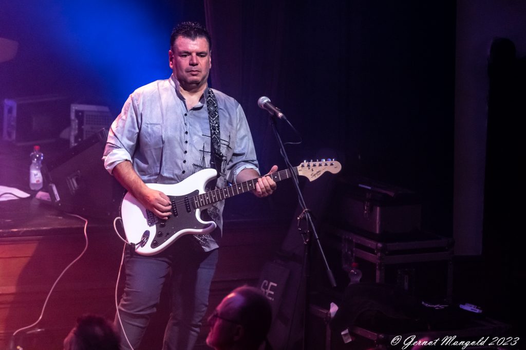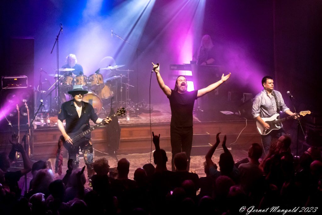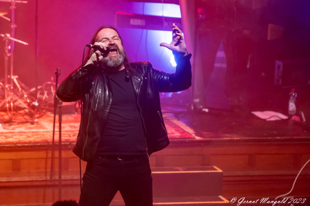 In eher instrumentalen Passagen hält er sich im Hintergrund oder ölt neben der Bühne seine Stimme und überlässt John Mitchel an der Gitarre und Bassist Kylan Amos das Zentrum der Stage. Gerade Mitchel kann mit einigen langen aber variablen Soli begeistern.