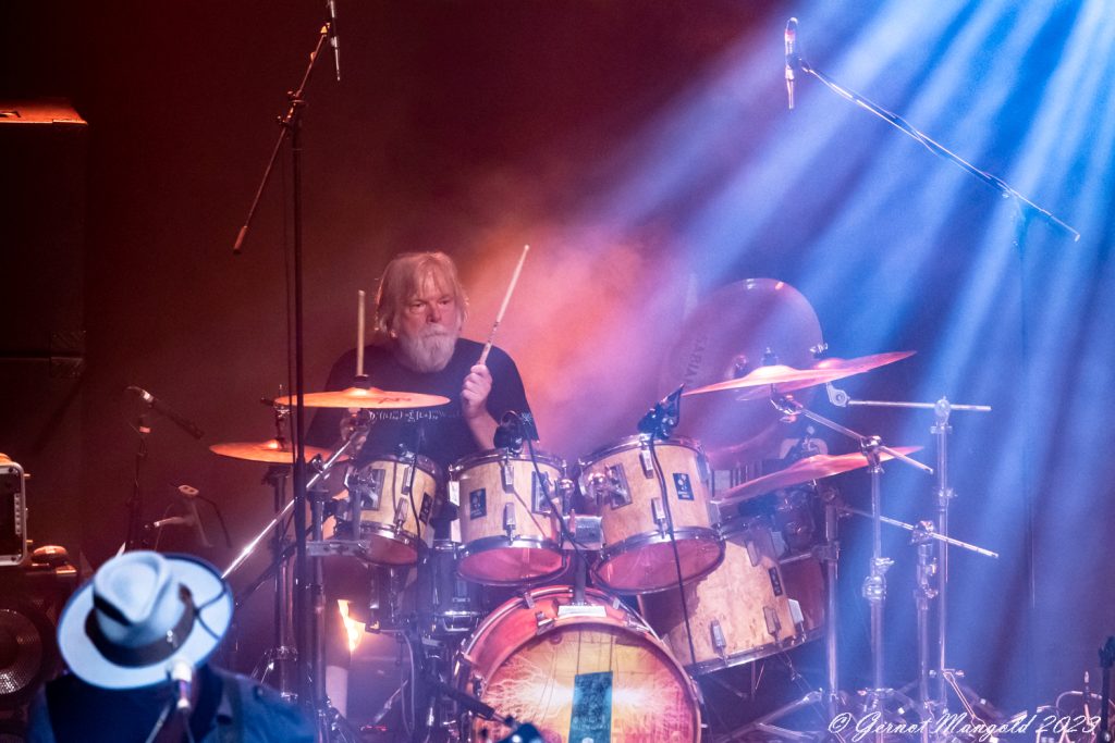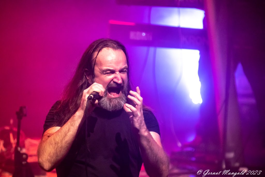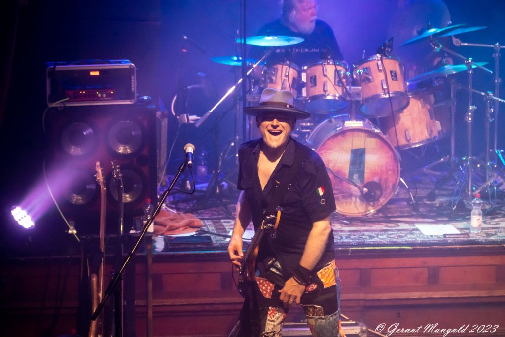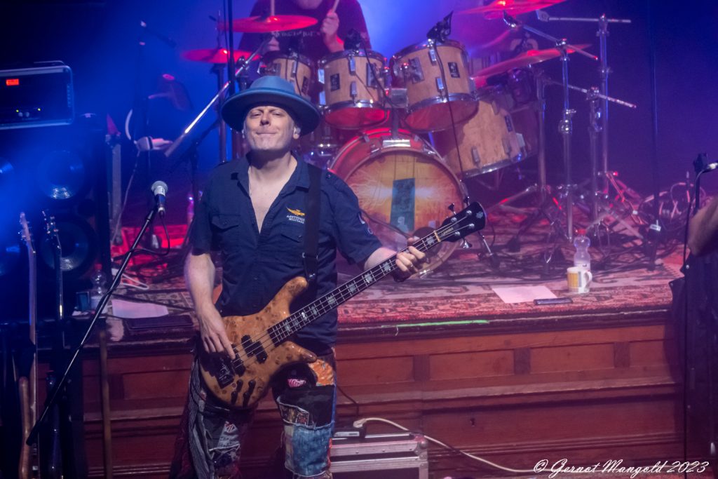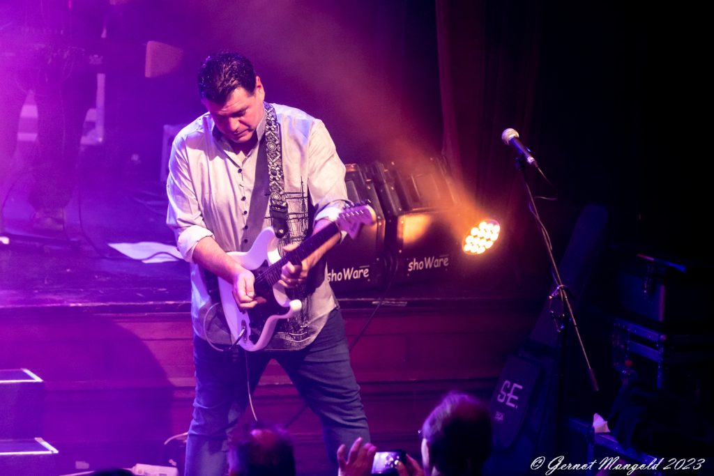 In eher instrumentalen Passagen hält er sich im Hintergrund oder ölt neben der Bühne seine Stimme und überlässt John Mitchel an der Gitarre und Bassist Kylan Amos das Zentrum der Stage. Gerade Mitchel kann mit einigen langen aber variablen Soli begeistern.