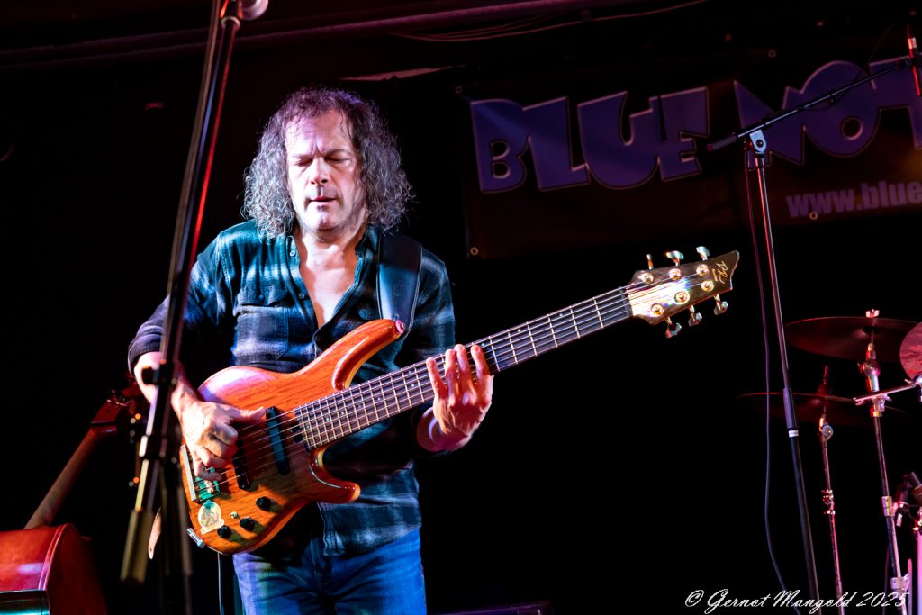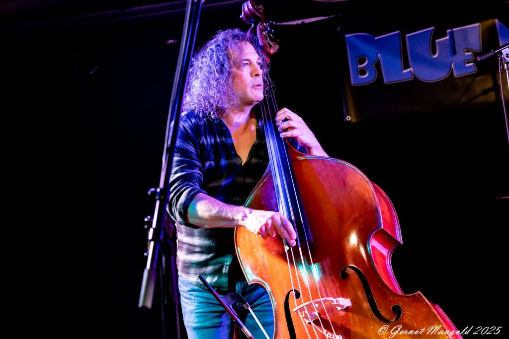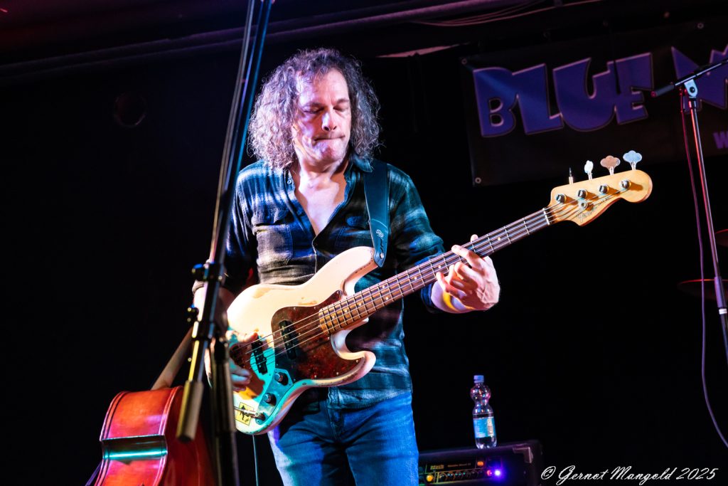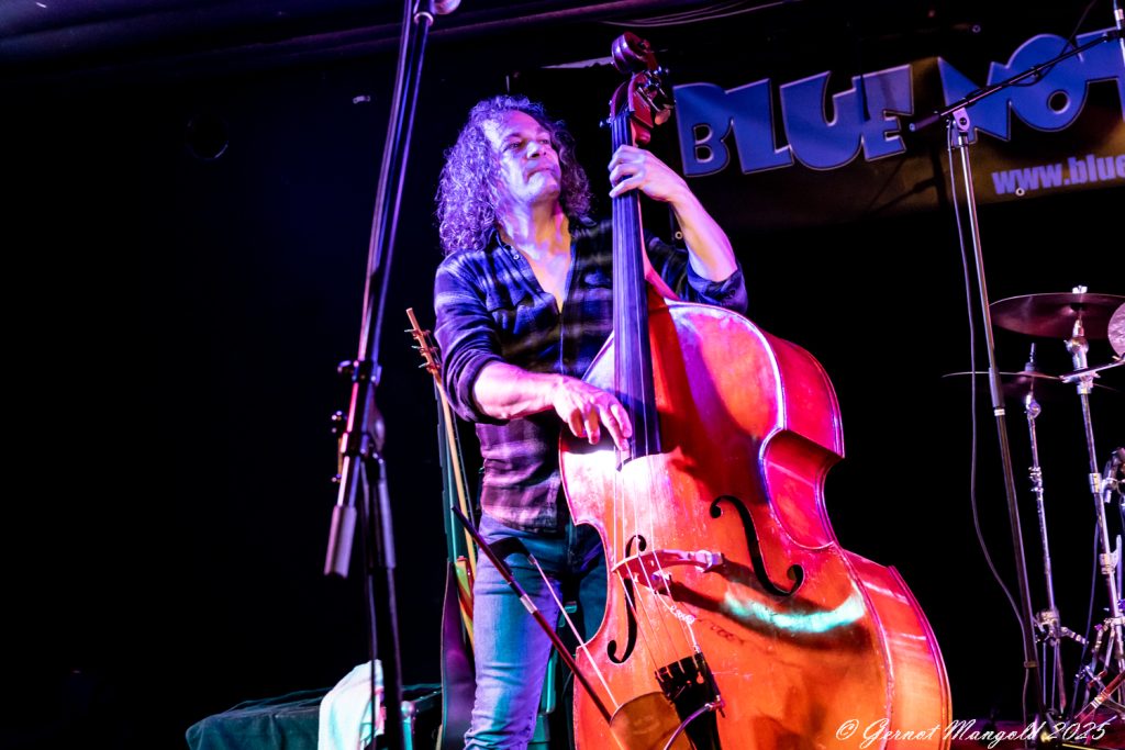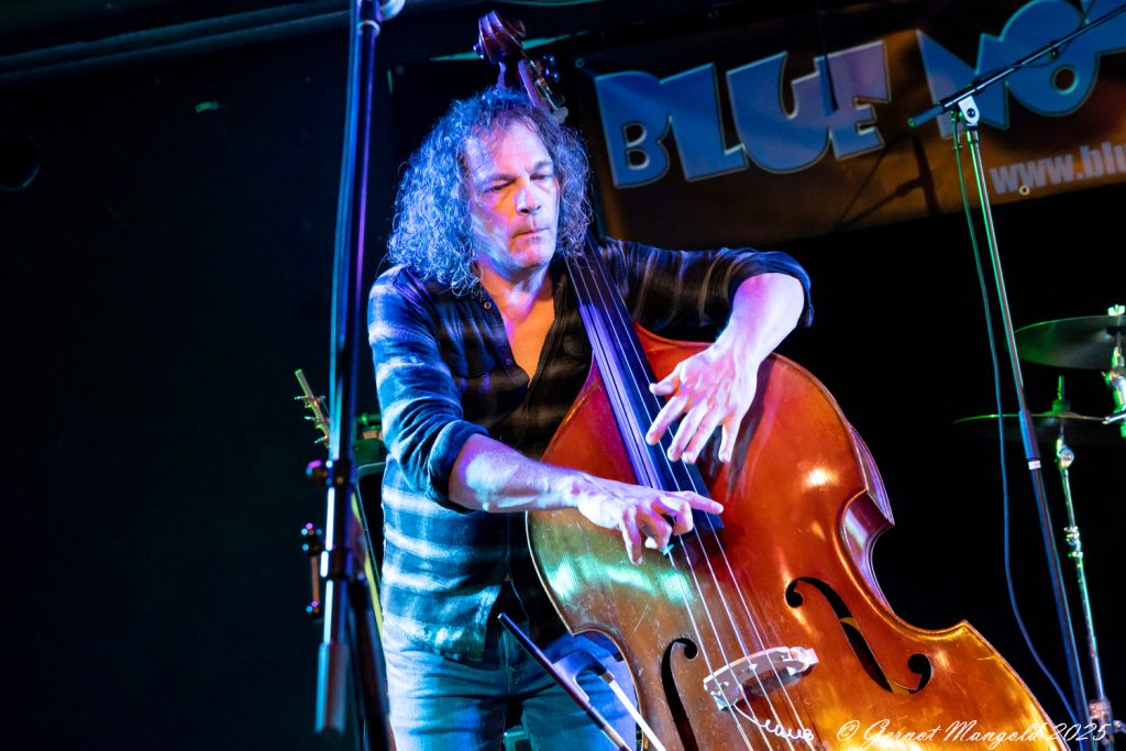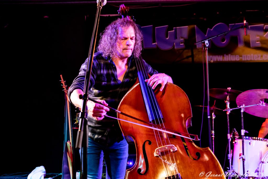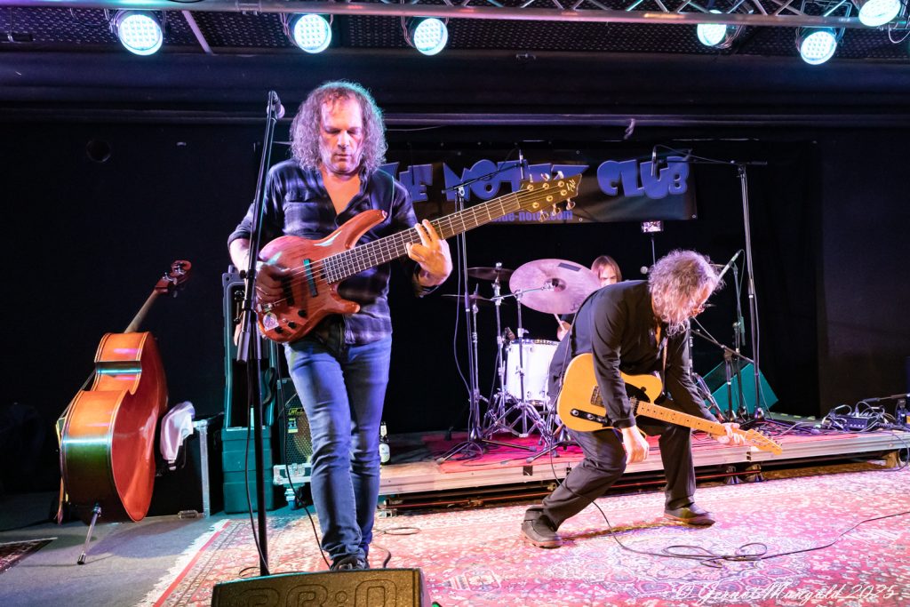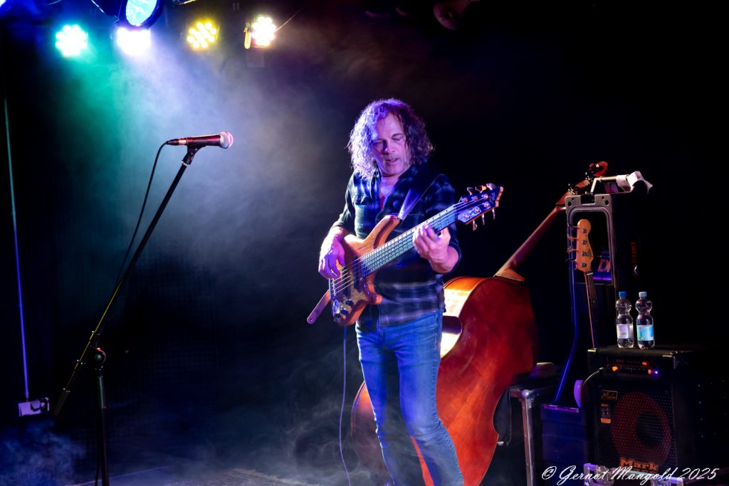 Der zweite Durchgang begann mit einem Akustik-Set, bei dem Robert Kopec vom E-Bass-Sechssaiter zum imposanten Contrabass wechselte. Als Einstieg gab es erstmal mit „Born Again“ einen herrlichen Ohrwurm. „Simmer Me Down“ mit dezentem JJ_Cale-Flair (inklusiv Harp-Solo) zündete auch in der zurückgenommenen Variante.