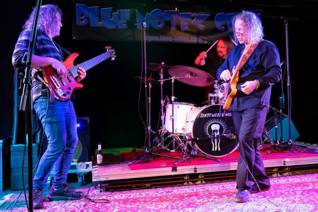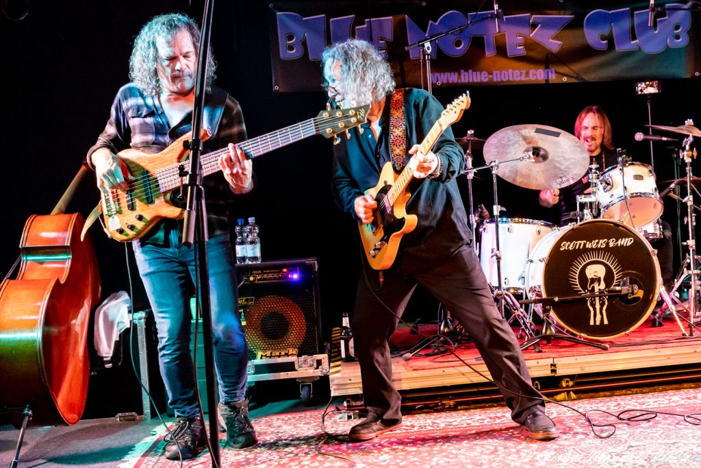 So fanden sich auch diesmal wieder nur gut 40 Leute im Dortmunder Blue Notez Club zur Scott Weis Band ein, obwohl das Trio bereits zwei Jahre zuvor einen grandiosen Gig an gleicher Stelle und demnach eine exzellente Visitenkarte abgeliefert hatte.