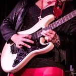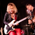 Vanesa (hatte vom Outfit her die Netzstrumpfhose diesmal gegen eine signalrote Hose mit kniehohen Stiefeln eingetauscht, um den Hals hatte sie wieder u. a. ihre lange rote Perlenkette mit Kreuz, die sich zwischenzeitlich immer wieder auf den Body ihrer Gitarre legte) spielte sich zum Auftakt des zweiteiligen Sets mit dem Standard-Klassiker „Hideaway“ die Finger warm, um dann mit Tracks wie „Rooster Blues“, If You Love Me“, Something’s Got A Hold On Me“, identisch zum letzten Mal, in den Gig hineinzufinden.