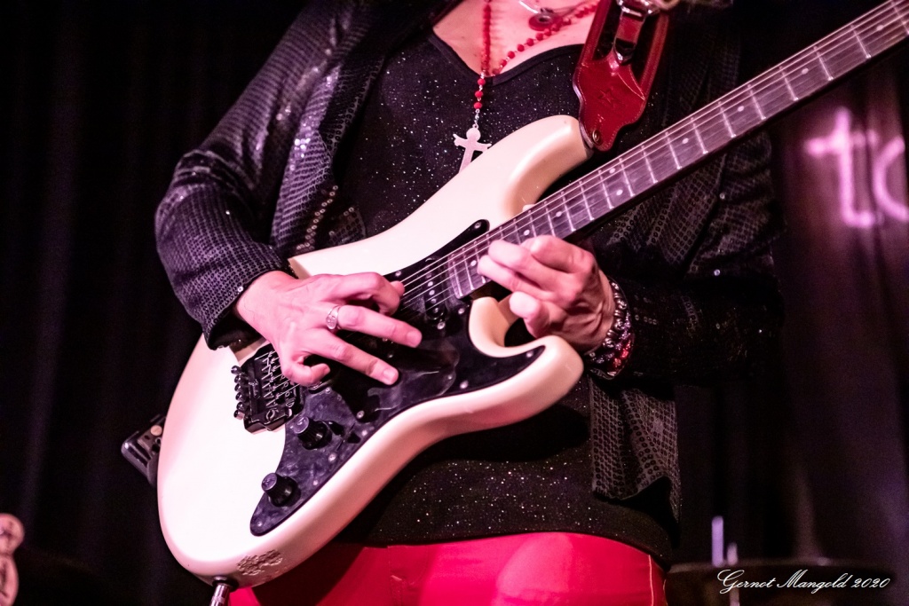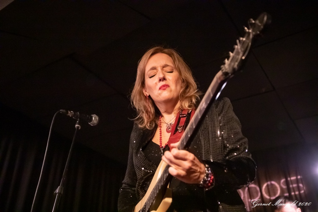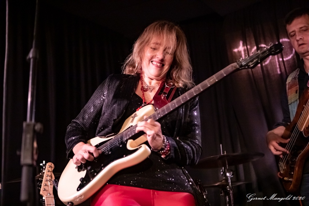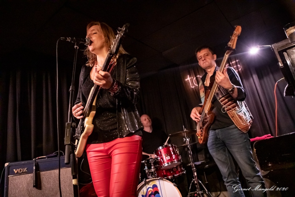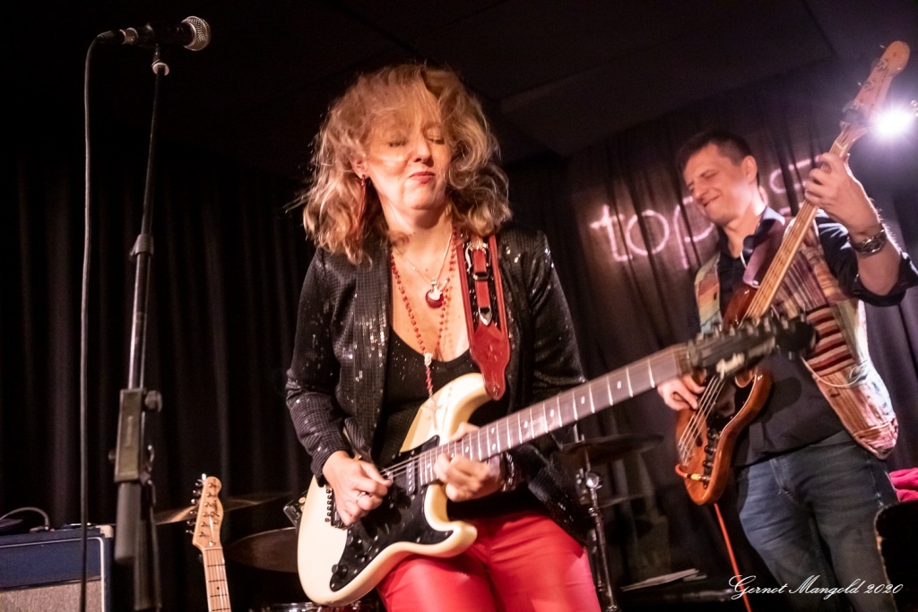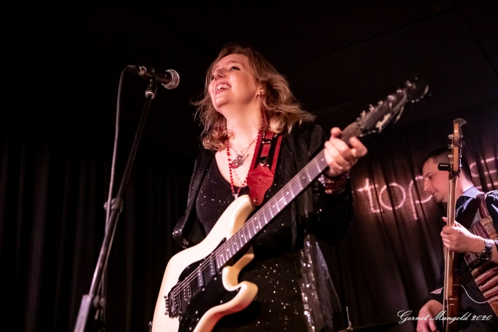 Vanesa (hatte vom Outfit her die Netzstrumpfhose diesmal gegen eine signalrote Hose mit kniehohen Stiefeln eingetauscht, um den Hals hatte sie wieder u. a. ihre lange rote Perlenkette mit Kreuz, die sich zwischenzeitlich immer wieder auf den Body ihrer Gitarre legte) spielte sich zum Auftakt des zweiteiligen Sets mit dem Standard-Klassiker „Hideaway“ die Finger warm, um dann mit Tracks wie „Rooster Blues“, If You Love Me“, Something’s Got A Hold On Me“, identisch zum letzten Mal, in den Gig hineinzufinden.