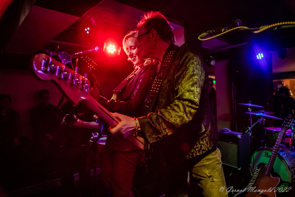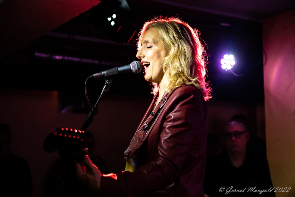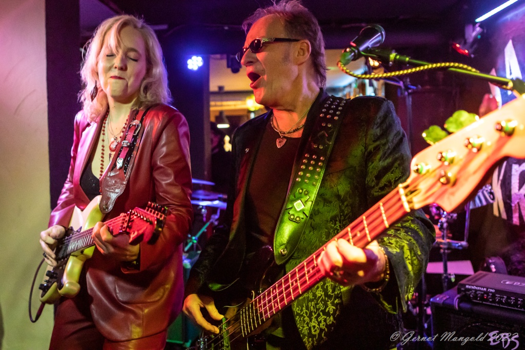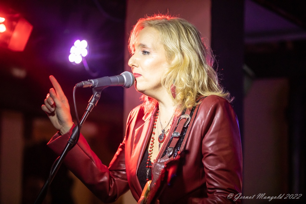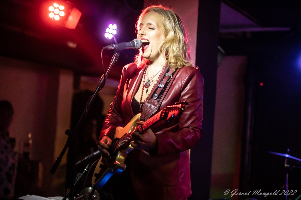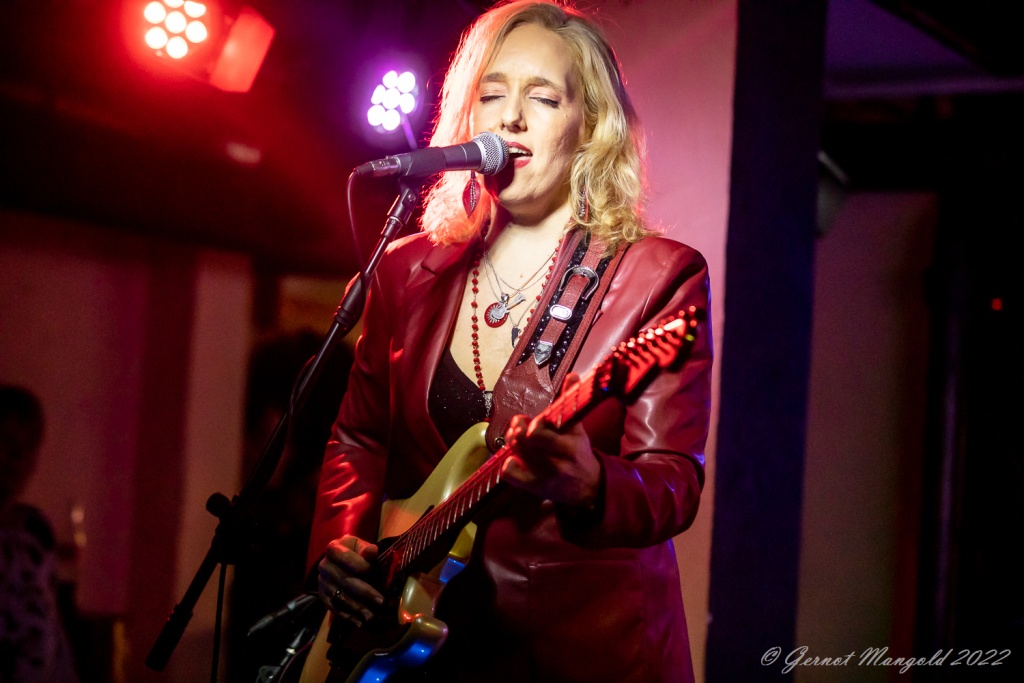 Das Trio eröffnete zum Aufwärmen der Finger, Hände und Arme, mit dem für Vanesa typischen Freddie King-Instrumental „Hideaway“. Danach stand dann aber das brandaktuelle Album „Visiones“ im Fokus, das, soweit Gernot anmerkte, auch bis auf einziges Stück, komplett vorgestellt wurde, wobei Vanesa bei den auf spanisch vorgetragenen, oft Bolero-artigen Stücken, ihren heimatlichen Wurzeln, immer wieder Tribut zollte oder bei den englischen Tracks dann Blues-rockig ihre Fingerfertigkeit auf der E-Gitarre avisierte.