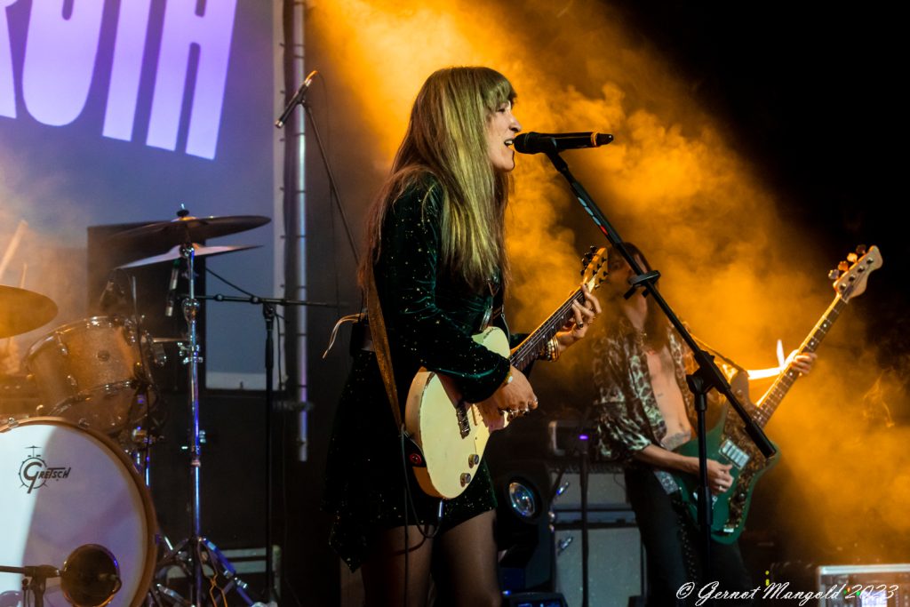 Lee-Ia Baum überzeugt mit ihrer markanten klaren Stimme, die auch schon für Werbezwecke genutzt wurde, und steuert bei fast allen Songs die Rhythmusgitarre bei und hat mit ihrer charmanten Art schnell die leider zu wenigen Fans, die an dem Abend gekommen sind, hinter sich. Tom Shemer unterlegt die Songs mit harten Gitarrenriffs und zeigt bei einigen krachende Solo, dass er ein starker Lead-Gitarrist ist.