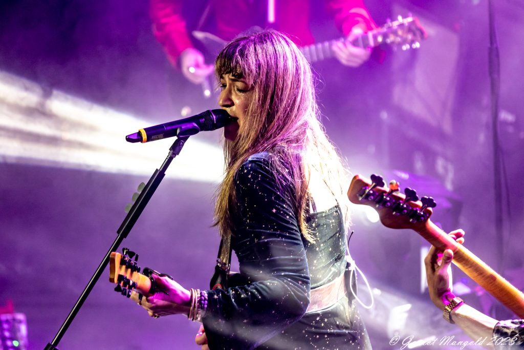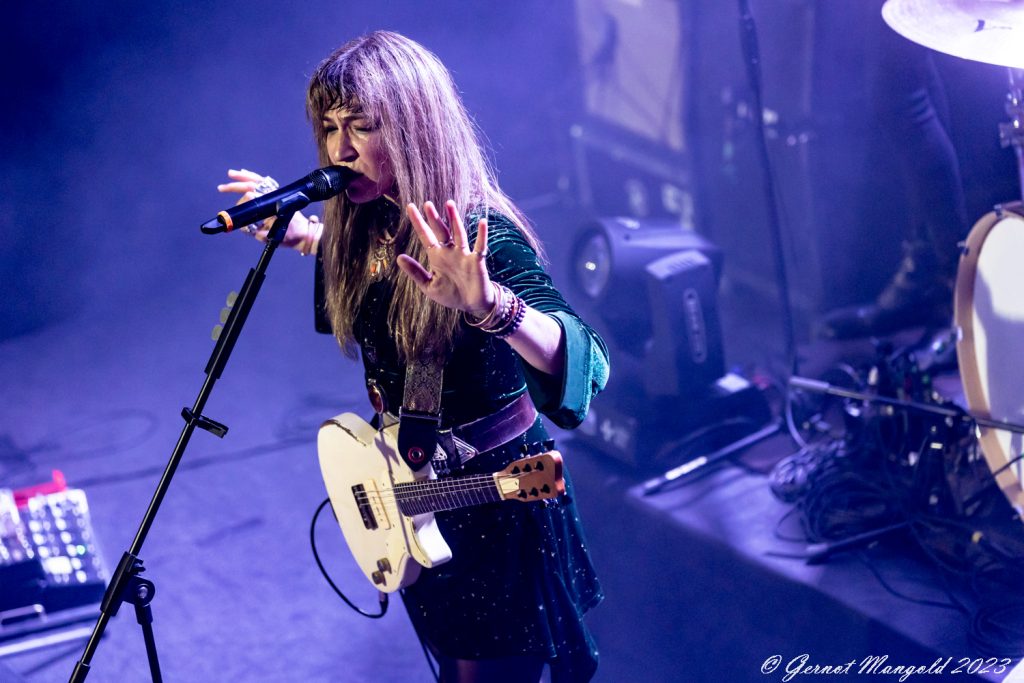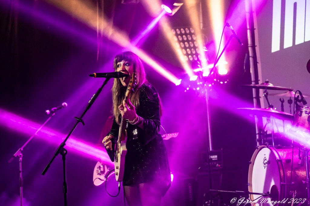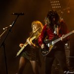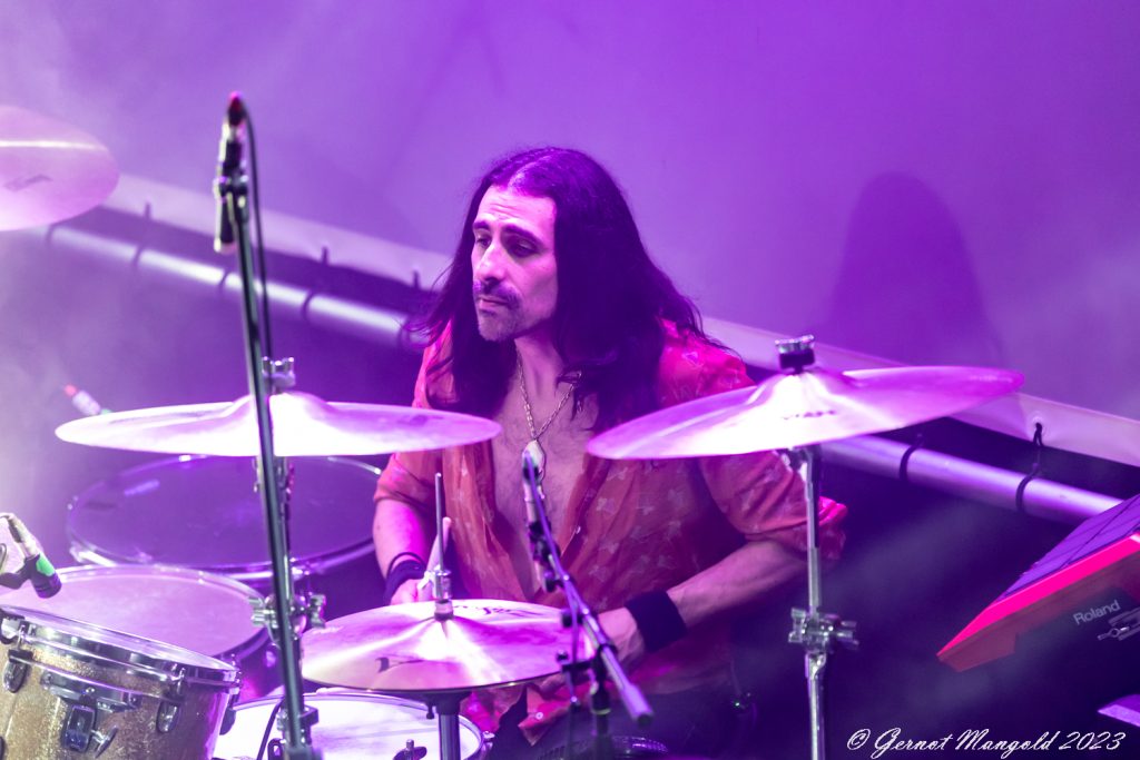 Dabei sucht er auf der Bühne oft den Weg zum Bassisten PY Letellier, um posenreich auch visuell Highlights zu setzen. Letellier und Drummer Dave Traina geben zu den Songs einen meisten treibenden Rhythmus vor, wo an der Stelle auch dem Sounsmischer ein Kompliment gemacht werden muss, dass alle Instrumente klar definierbar zu hören sind und bei dem Soundgewitter die Stimme von Lee-Ia Baum nicht untergeht.