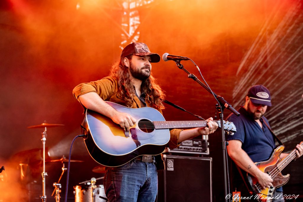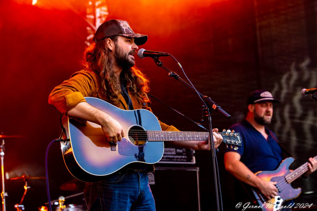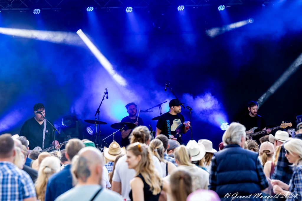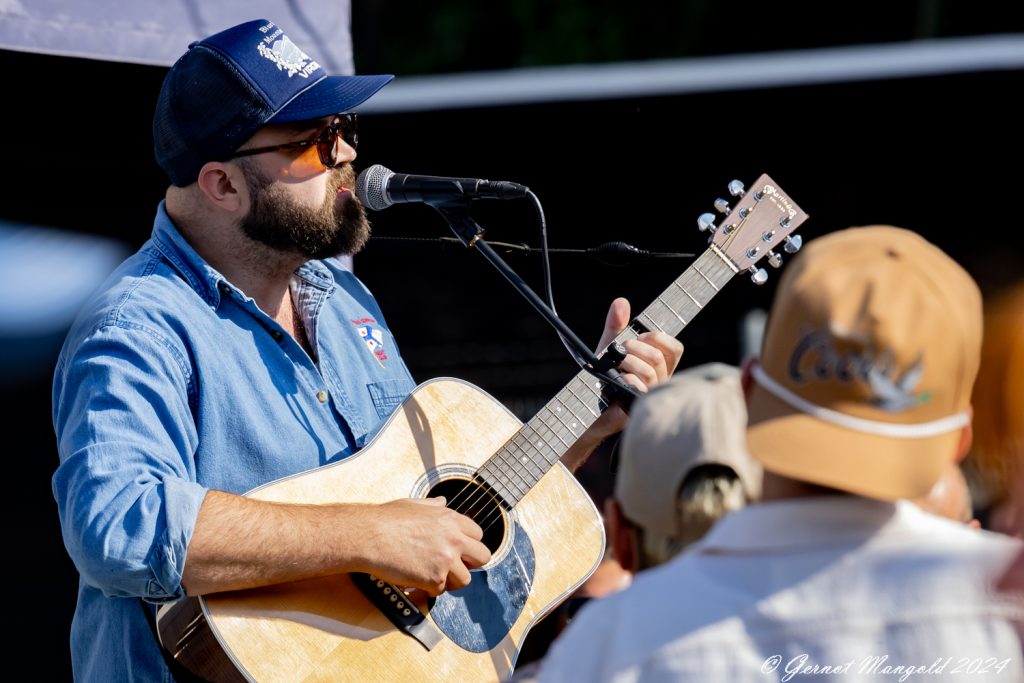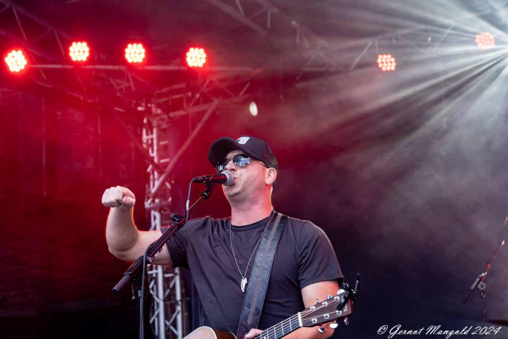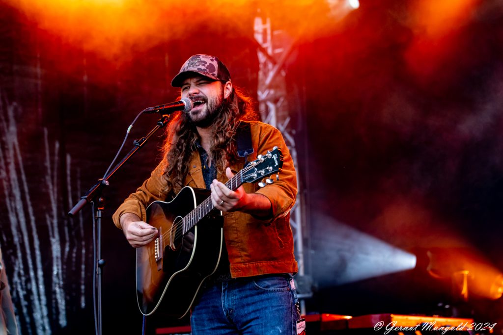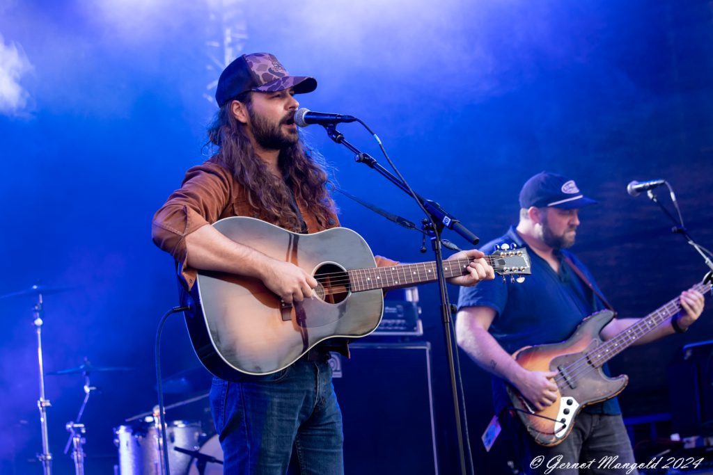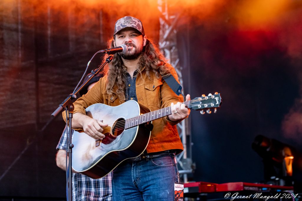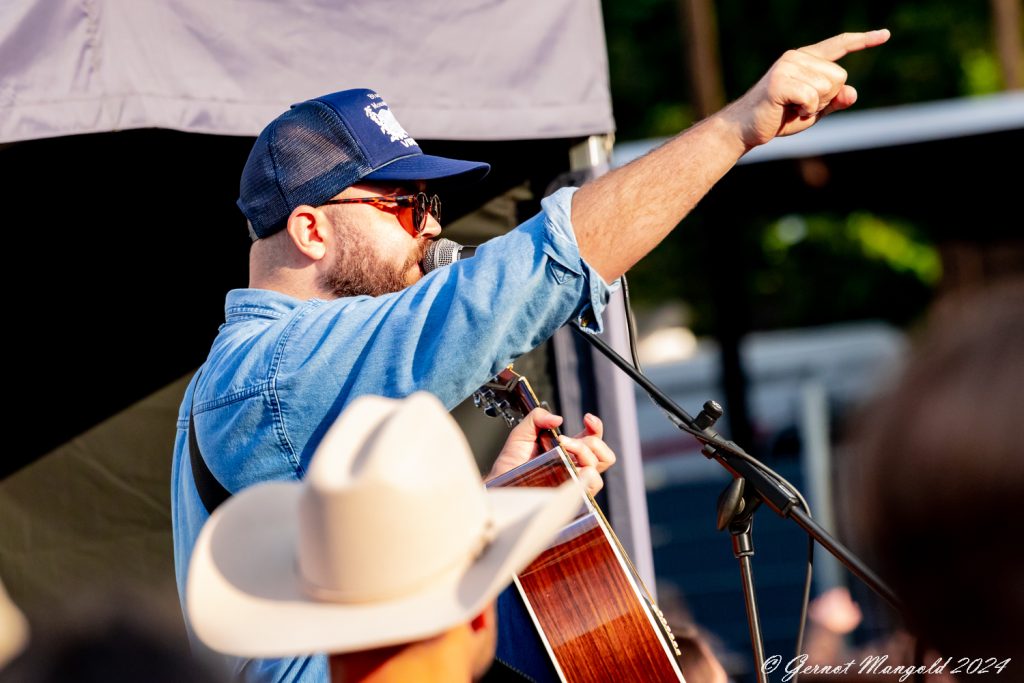 Überhaupt gefiel auch das ganze Drumherum. Da gab es Stände, wo man sich Merchandising-Sachen der involvierten Künstler, aber auch Country-typische Accessoires,  erwerben konnte, seine Talente beim Lassowerfen beweisen konnte, als auch weitere Wurfspiele und natürlich auch noch den aus den Blue Ridge Mountains kommenden Tyler Sjöström, der solo zwischen den drei Umbaupausen mit seiner grandiosen Stimme (erinnerte mich an den britischen Bluesbarden Sean Webster),  Songs aus seinem eigenen Fundus u. a. „Holding On“, Call Me Sweet, „Red River“) präsentieren konnte.