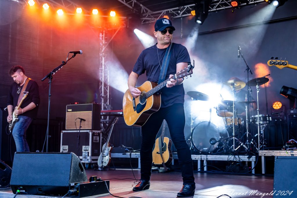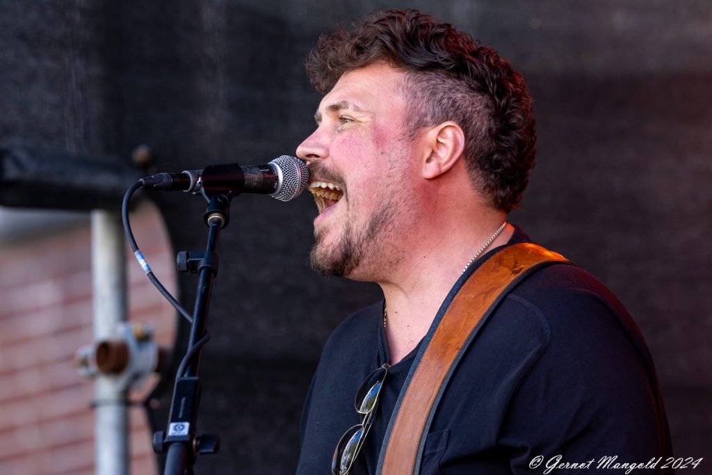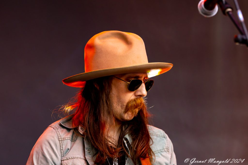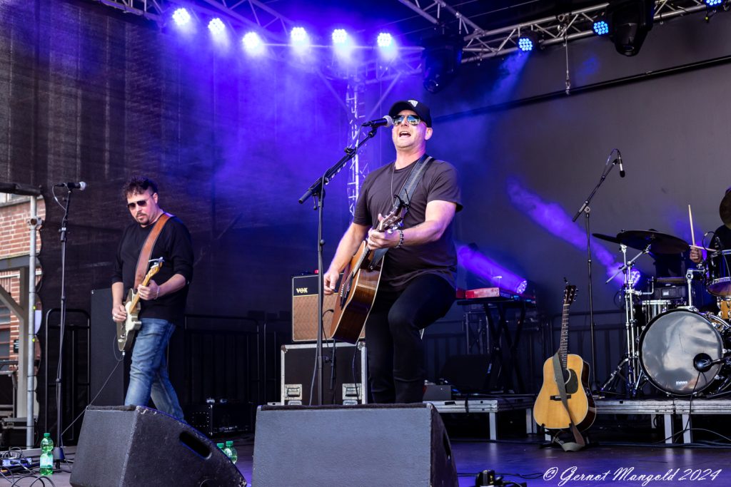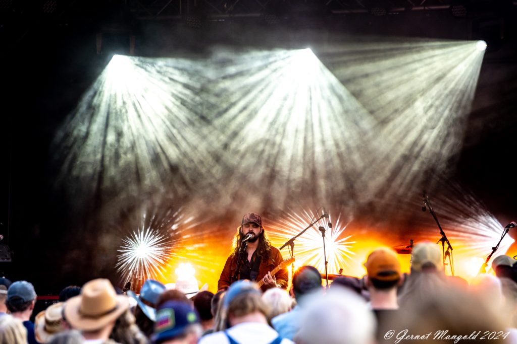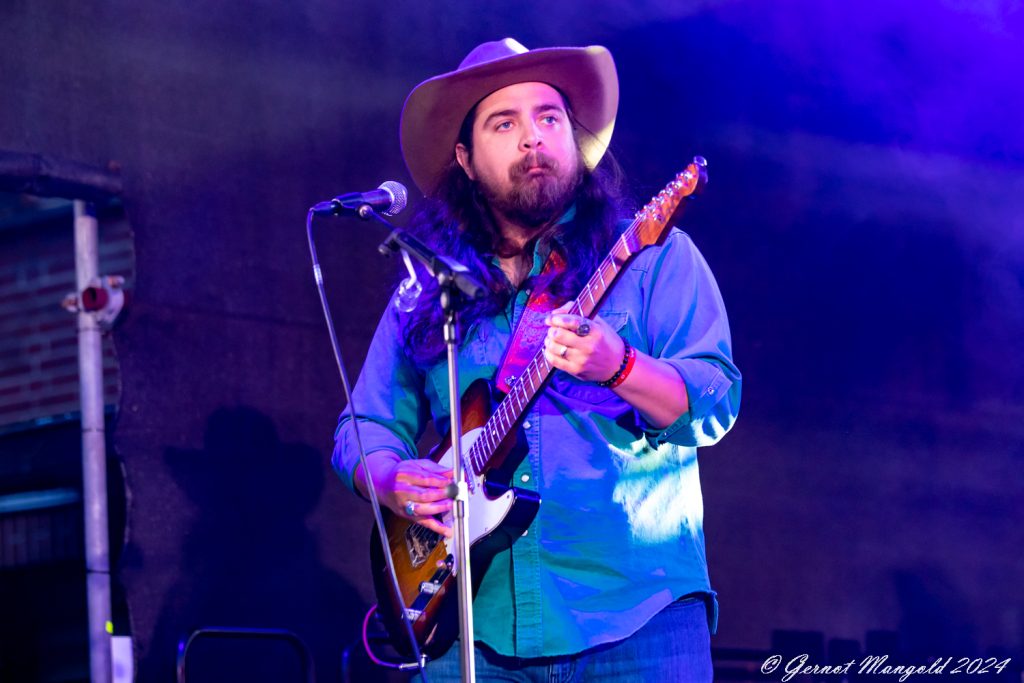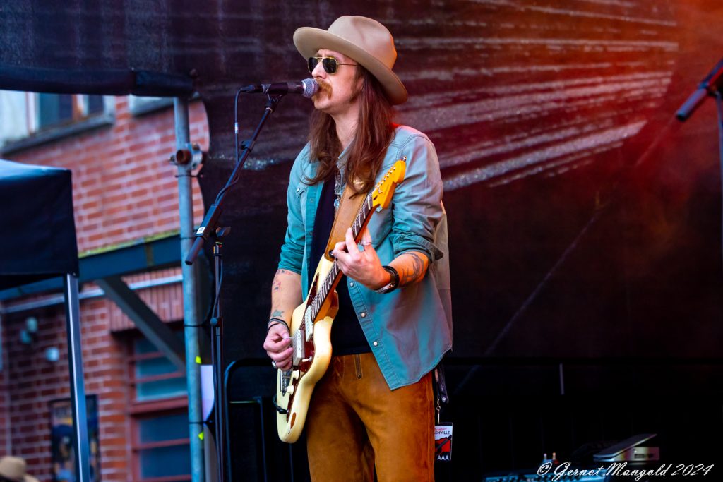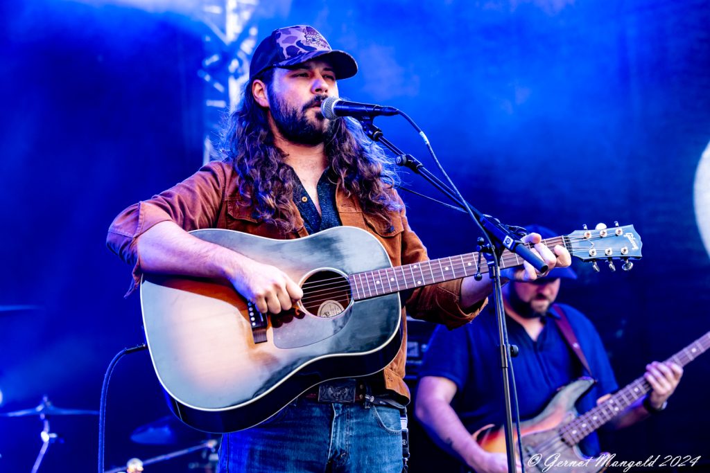 Überhaupt gefiel auch das ganze Drumherum. Da gab es Stände, wo man sich Merchandising-Sachen der involvierten Künstler, aber auch Country-typische Accessoires,  erwerben konnte, seine Talente beim Lassowerfen beweisen konnte, als auch weitere Wurfspiele und natürlich auch noch den aus den Blue Ridge Mountains kommenden Tyler Sjöström, der solo zwischen den drei Umbaupausen mit seiner grandiosen Stimme (erinnerte mich an den britischen Bluesbarden Sean Webster),  Songs aus seinem eigenen Fundus u. a. „Holding On“, Call Me Sweet, „Red River“) präsentieren konnte.