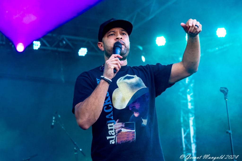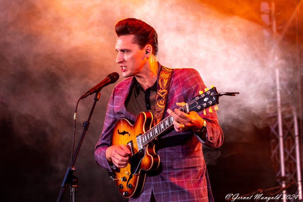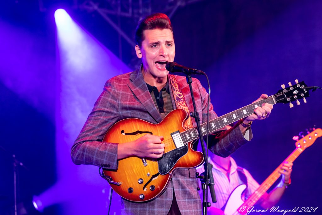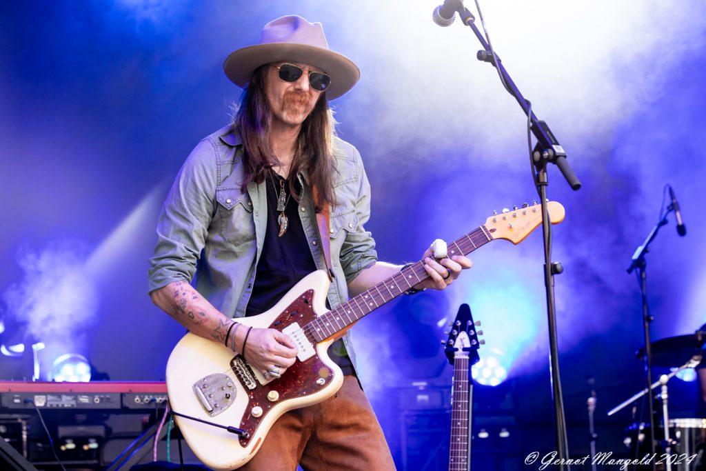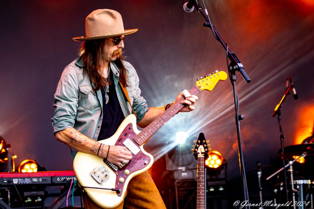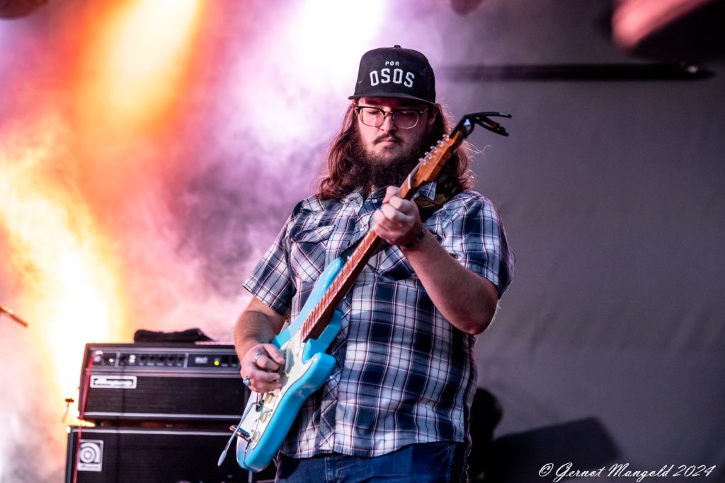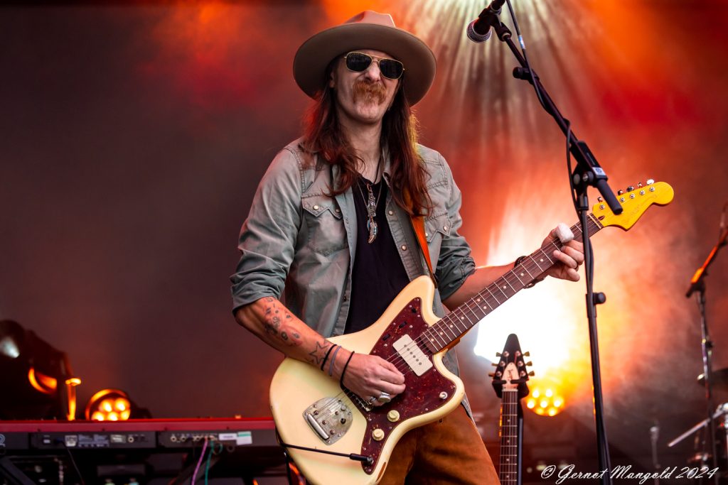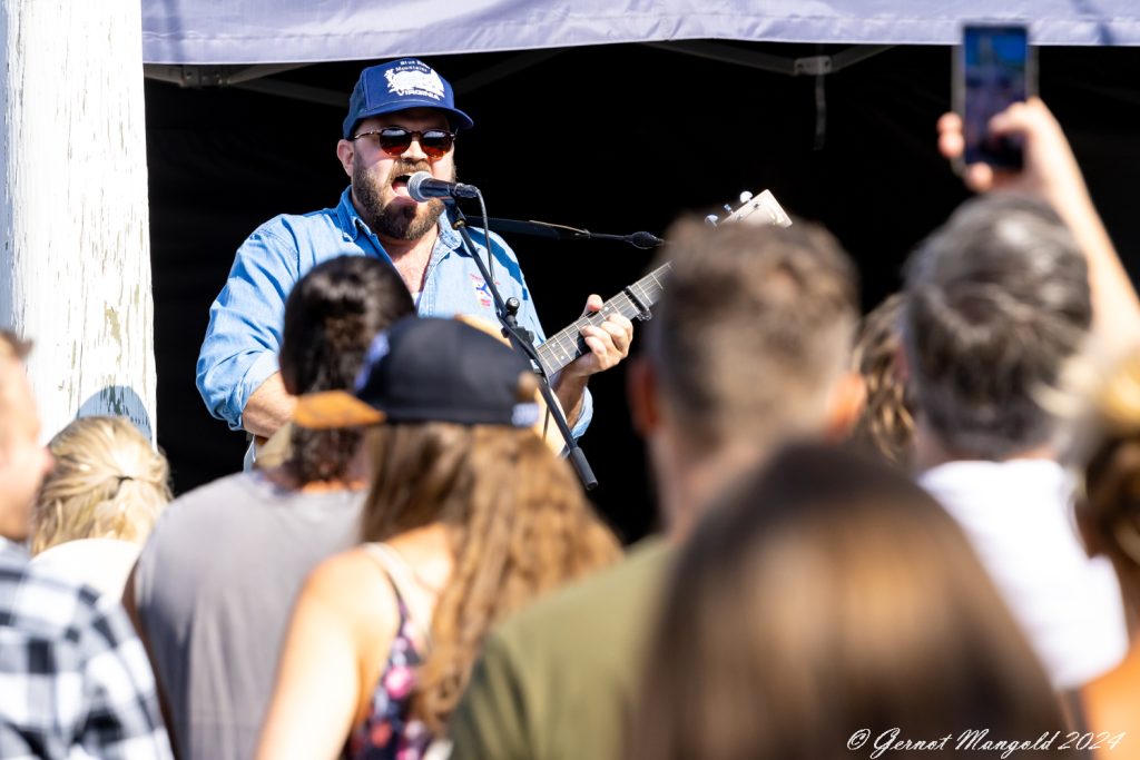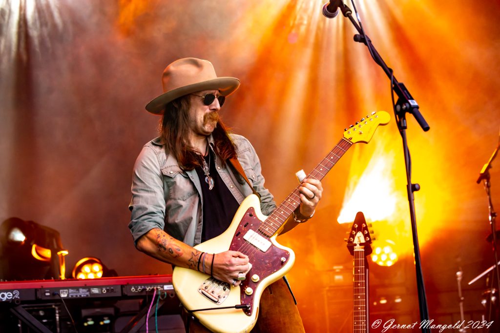 Überhaupt gefiel auch das ganze Drumherum. Da gab es Stände, wo man sich Merchandising-Sachen der involvierten Künstler, aber auch Country-typische Accessoires,  erwerben konnte, seine Talente beim Lassowerfen beweisen konnte, als auch weitere Wurfspiele und natürlich auch noch den aus den Blue Ridge Mountains kommenden Tyler Sjöström, der solo zwischen den drei Umbaupausen mit seiner grandiosen Stimme (erinnerte mich an den britischen Bluesbarden Sean Webster),  Songs aus seinem eigenen Fundus u. a. „Holding On“, Call Me Sweet, „Red River“) präsentieren konnte.