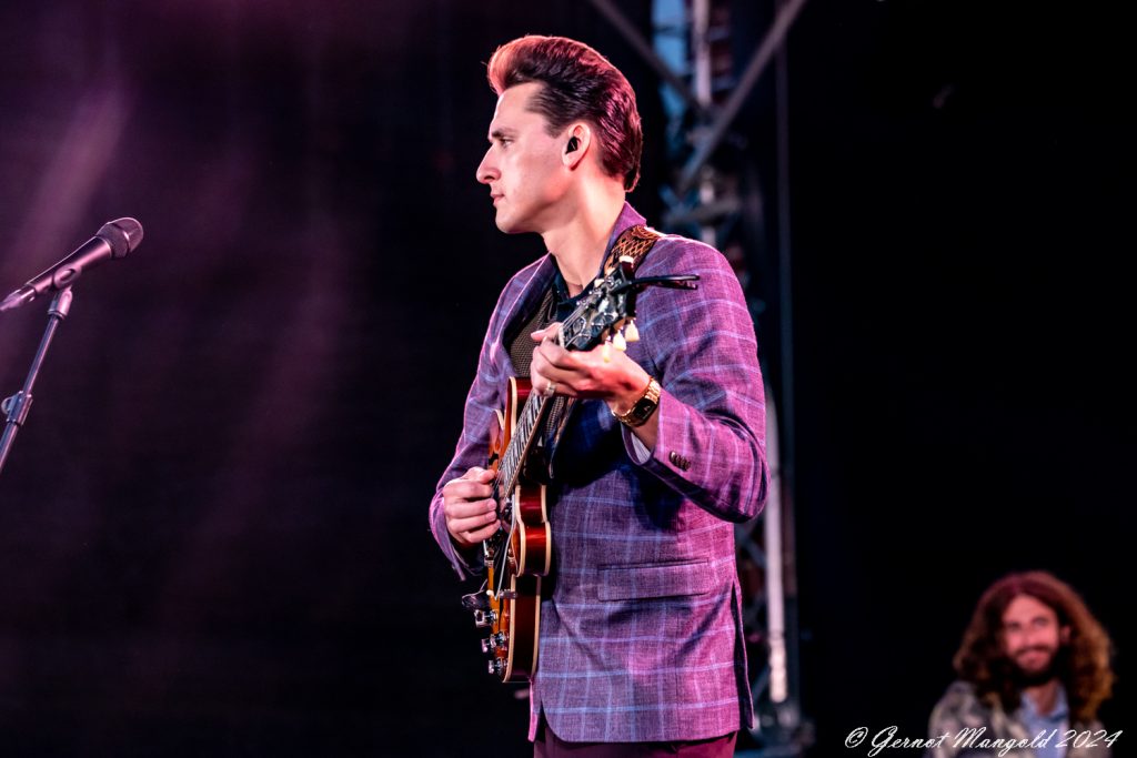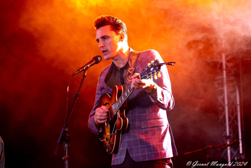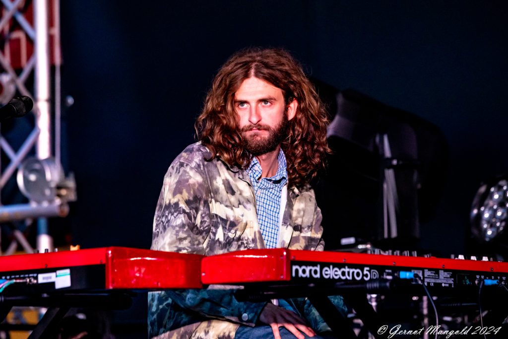 Der eröffnende Kanadier Tim Hicks legte die Messlatte schon zu Beginn ziemlich hoch. Der Singer-Songwriter konnte (samt seines hervorragend spielenden Mietmusikerensembles, das auch den folgenden Tebey maßgeblich begleitete) mit seiner sympathischen und kommunikativen Art, aber auch mit einem starken musikalischen Programm, sofort das sich stetig füllende Areal (am Ende waren es dann um die 700 Besucher) auf seine Seite ziehen.