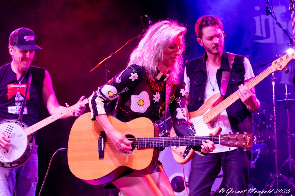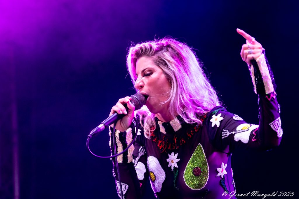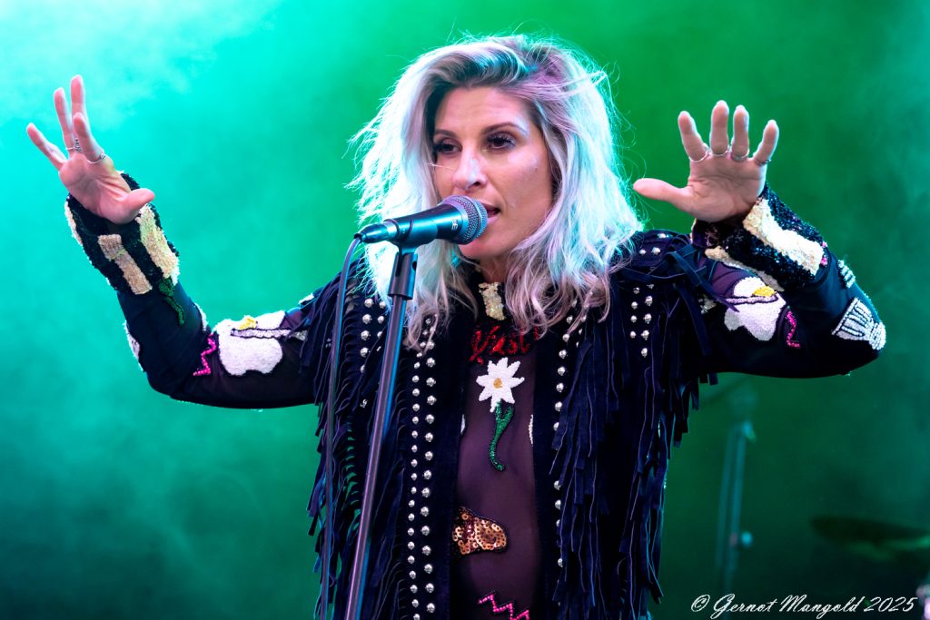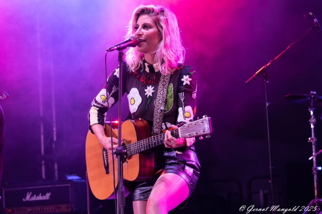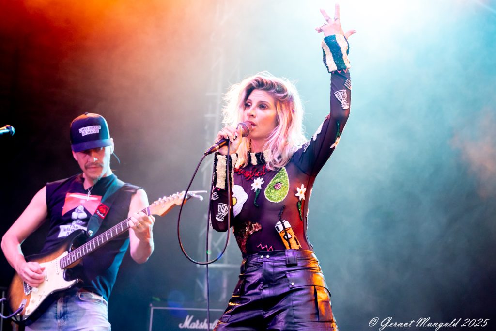‚Wenn aus bunten Schmetterlingen graue Mäuse werden‘ hieß da ein Kapitel und beleuchtete die Entwicklung des weiblichen Parts vor und nach Eintreten in dieses o. a. Bündnis fürs Leben. In dieser Hinsicht scheint da, wie es dann auch der ‚bunte‘, launige, gewohnt zwischen Chaos, Rebellion und Rock’n’Roll pendelnde Gig offerierte, in Bezug auf die Protagonistin des Abends, erstmal jegliche Gefahr gebannt zu sein.
