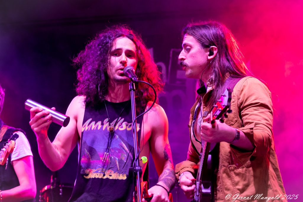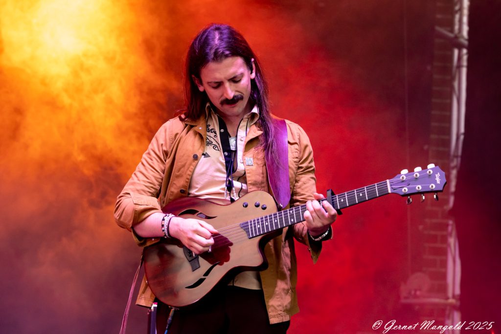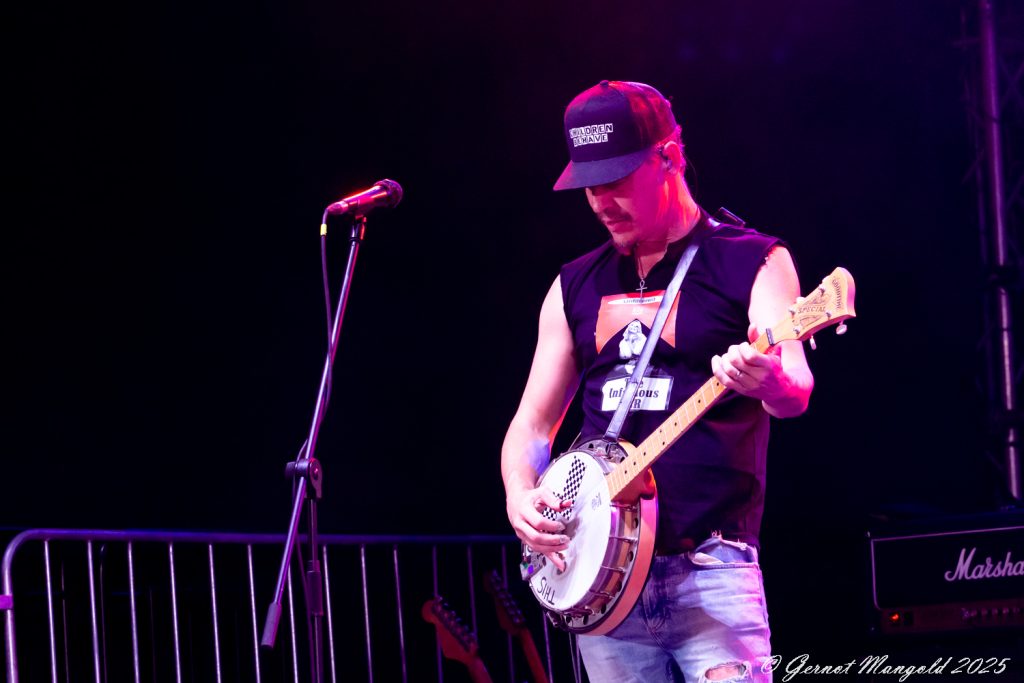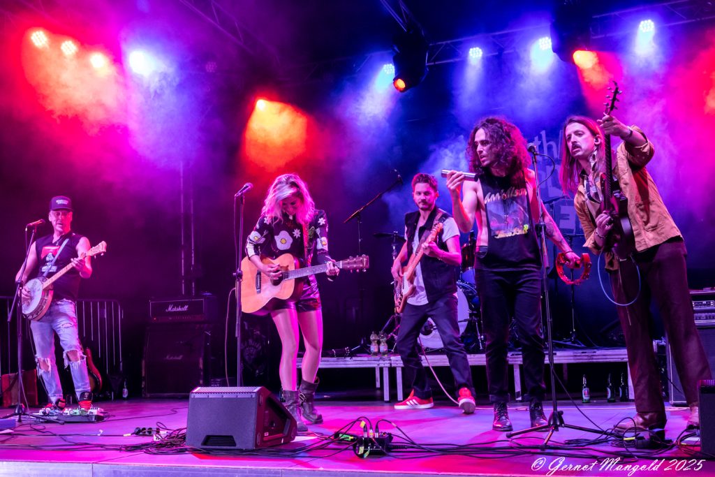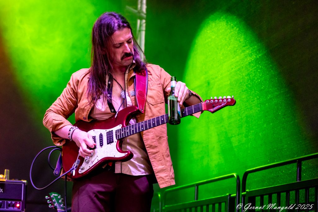Die Band trat zum ersten Mal, soweit ich mich erinnere im Quintett auf, die Hinzunahme des zweiten Gitarristen Colton Jones erwies sich als gelungene Belebung. Der spielte nicht nur viele starke konventionelle Soli, sondern bevorzugte, statt des Bottlenecks, für seine Slideeinlagen, ausschließlich eine 0,33 Liter Bierflasche.