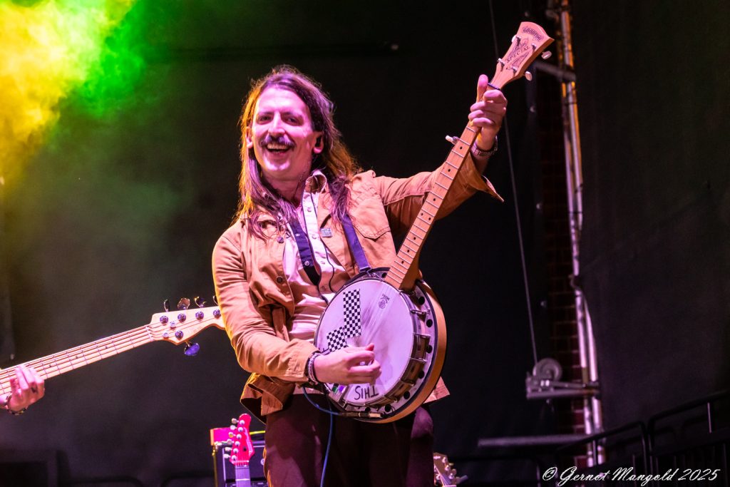 Neu war auch die starke Gesangseinbindung der Bandmitglieder, wovon sich der ’neue‘ Drummer Tyler Kloewer besonders im zweiten Part bei einem zünftigen Bluegrass Jam Medley bei den Lead Vocals hervortat. Gatte Caleb Sherman ‚dirigierte‘ die Songs mehr durch Variabilität mit unterschiedlichem Instrumenteneinsatz wie E-Gitarre, Banjo und Akkordeon.