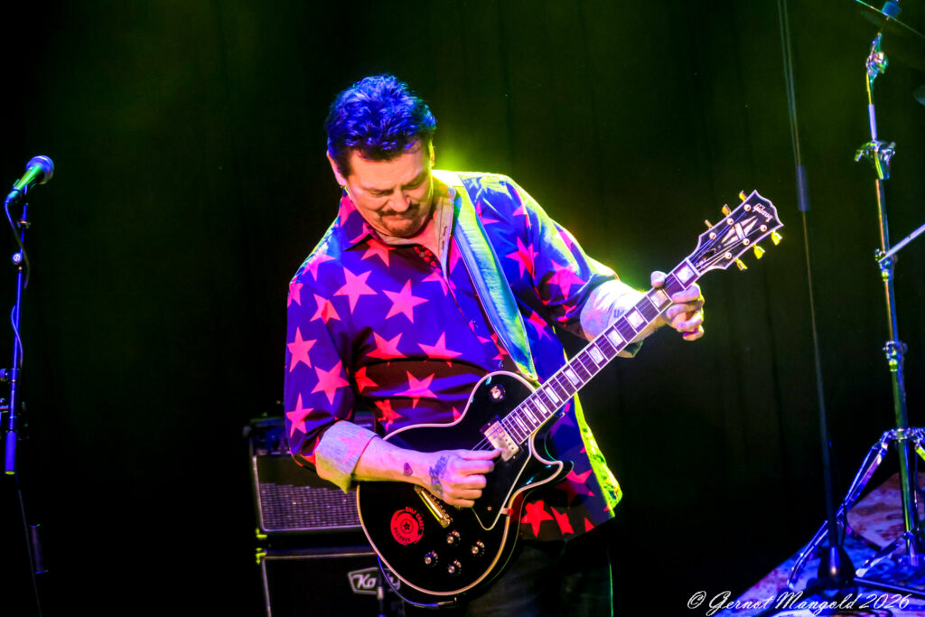 Emotional ist der Slowblues „Forever My Love“, der seiner Frau gewidmet ist. Am Ende des über zwei Stunden gehenden Konzerts greift er dann auf etwas ältere Songs zurück. Das krachend-jammende „Judgment Day“, worin er „Kashmir“ und „Whole Lotta Love“ einfließen lässt, schließt die Show ab.