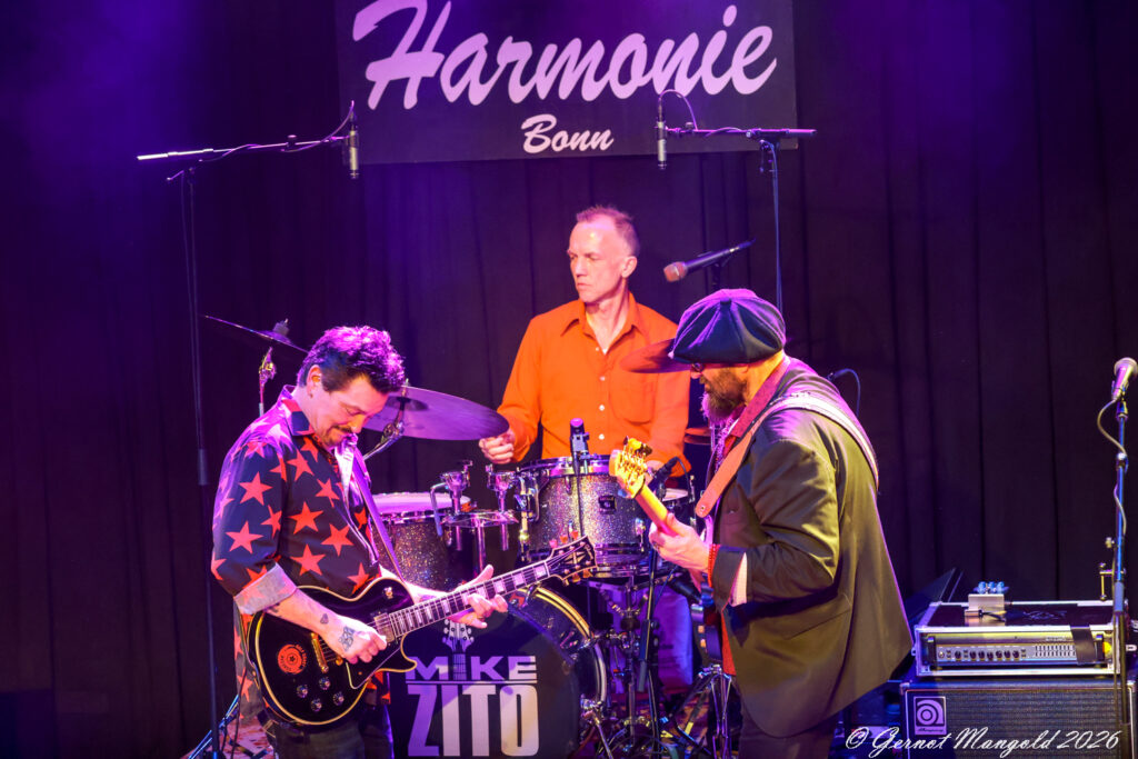 Matthew R. Johnson an den Drums und Terry Dry am Bass sind mehr als Begleitmusiker. Mehrfach zieht sich Zito in den Hintergrund zurück, lässt den beiden Freiräume und richtet zum Publikum die Worte „What A Band!“ und forciert damit den verdienten Szenenapplaus nach ihren Solo-Parts.